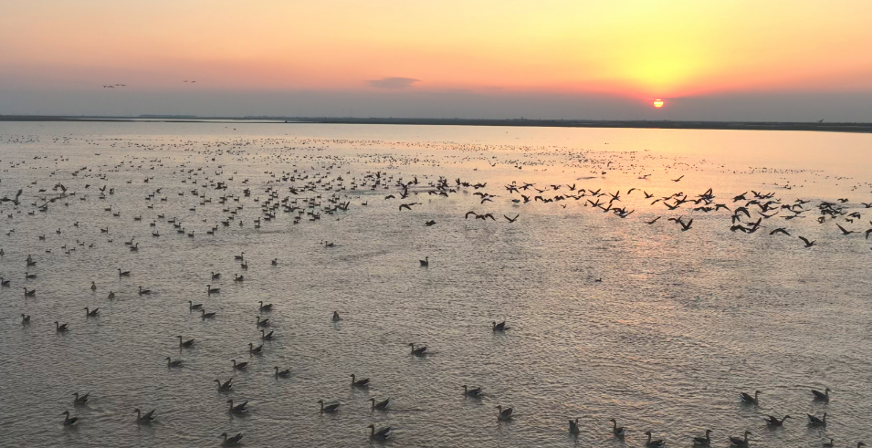 暮色中的鄱阳湖,夕阳为它镀上了金边。岸边,护渔队员收起巡逻艇的锚,监测平台的灯光映照着屏幕上跳动的数据——这是湿地的呼吸,是生命的交响,是九江人用多年守护,写给水与岸的情书。