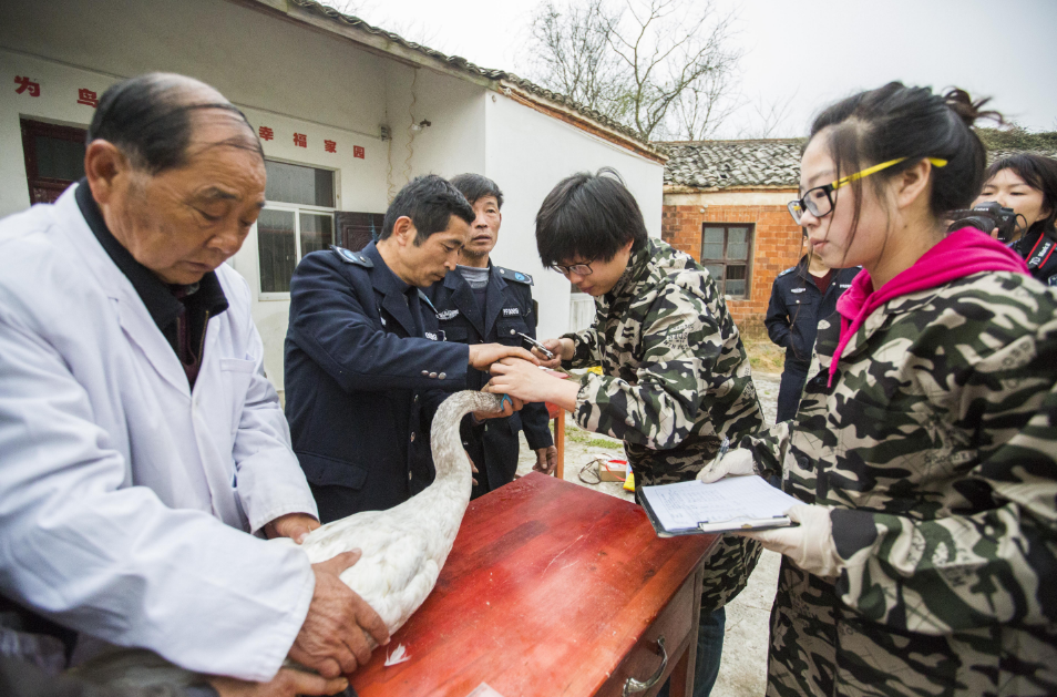 李春如正在检查候鸟健康状况